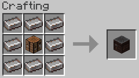 8x Iron Ingots and 1x Crafting Table makes a Smithing Table